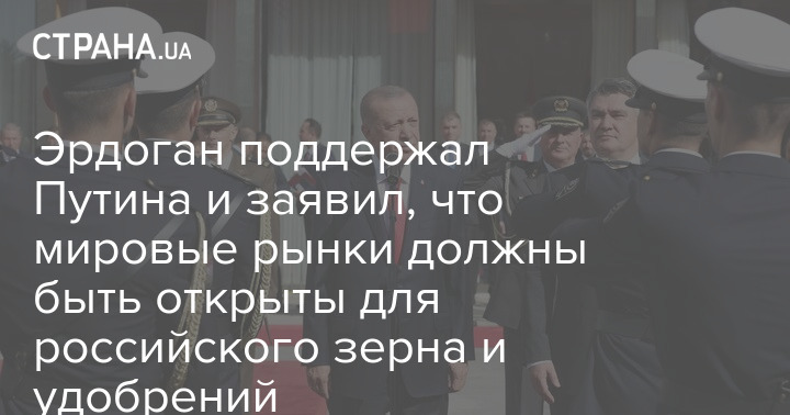 В Турции отреагировали на заявление президента России Владимира Путина о том, что зерно из Украины идет не в Африку, а в развитые страны. Президент Турции Реджеп Эрдоган заявил, что согласился с заявлением российского коллеги и поддержал требование РФ открыть рынки для российского зерна и удобрений.