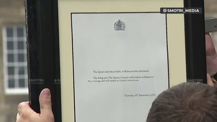 "Сегодня днем королева мирно скончалась в Балморале. Король и королева-консорт останутся в Балморале сегодня вечером и вернутся в Лондон завтра. Четверг, 8 сентября 2022 г.", - гласит запись.