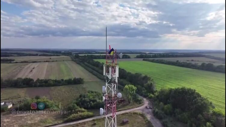 С телевышки в Байраке Харьковской области (село южнее Балаклеи) убрали российский флаг и повесили на ней украинский.
