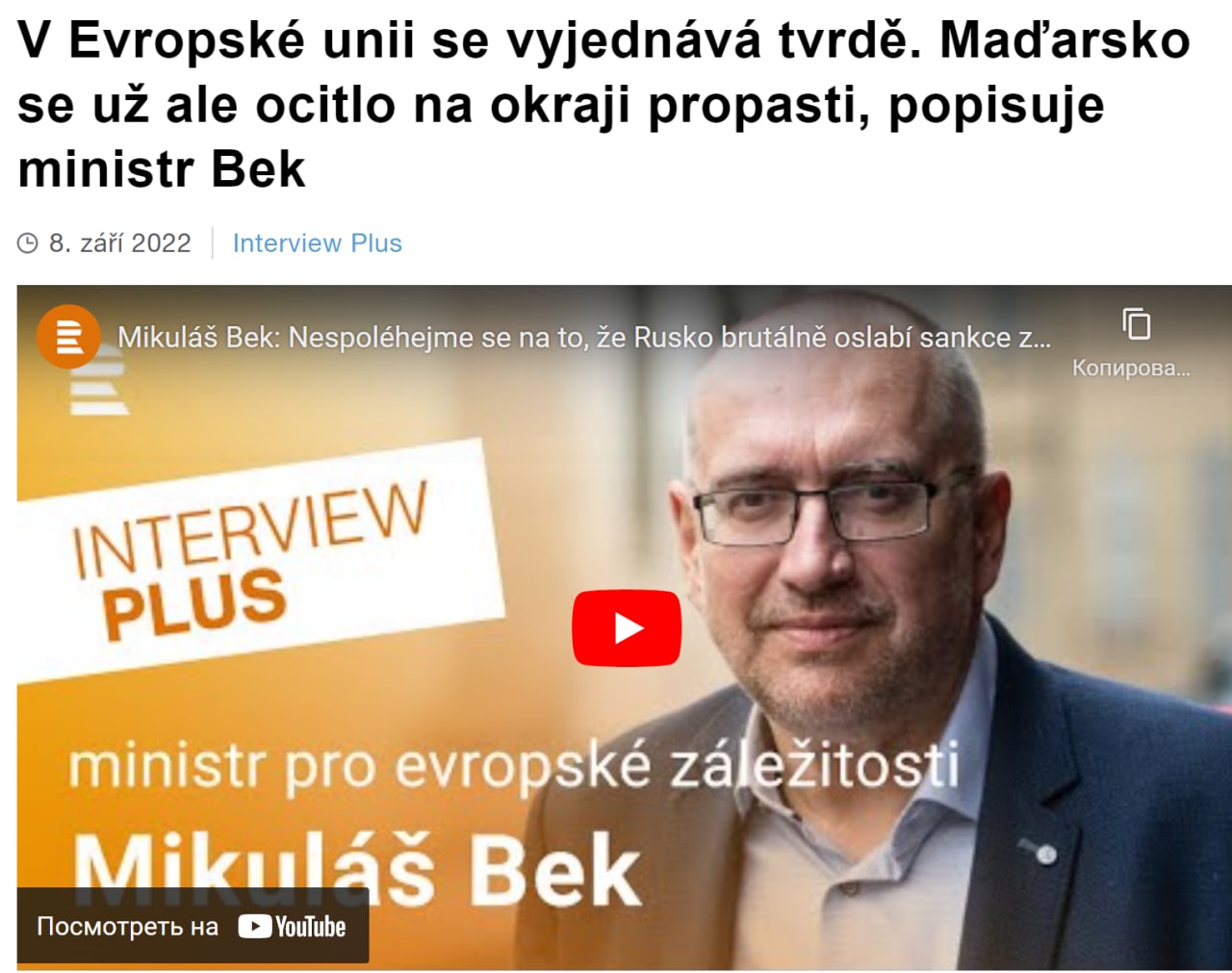08:44 Власти Чехии заявили, что Венгрия из-за своей позиции по России находится на грани выхода из Евросоюза.