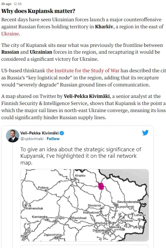 17:44 Британское издание The Guardian объясняет, почему так важен Купянск в этой войне.