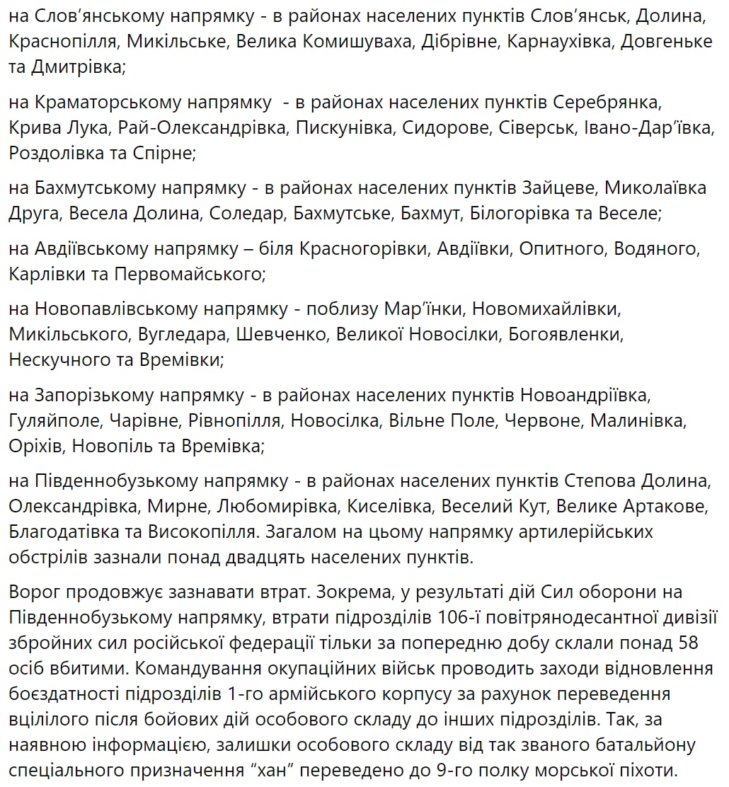1. Отбиты атаки противника в районе Бахмута (Соледар, Зайцево, Веселая Долина и собственно сам Бахмут).