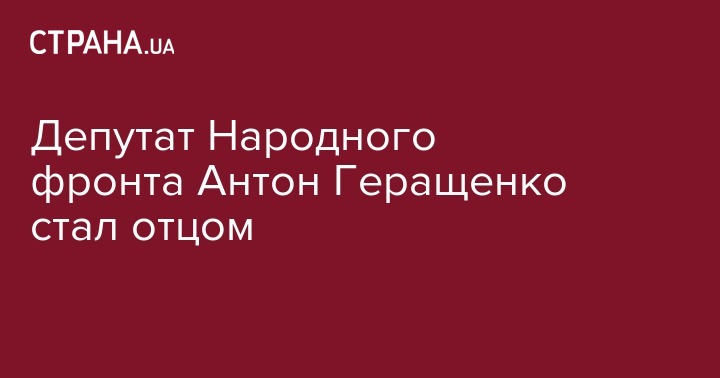 Народный депутат и внештатный советник министра внутренних дел Антон Геращенко  ("Народный фронт") стал отцом. Об этом сообщил  харьковский журналист Игорь Поддубный в Facebook.