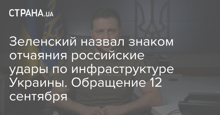 Зеленский назвал знаком отчаяния российские удары по инфраструктуре Украины. Обращение 12 сентября