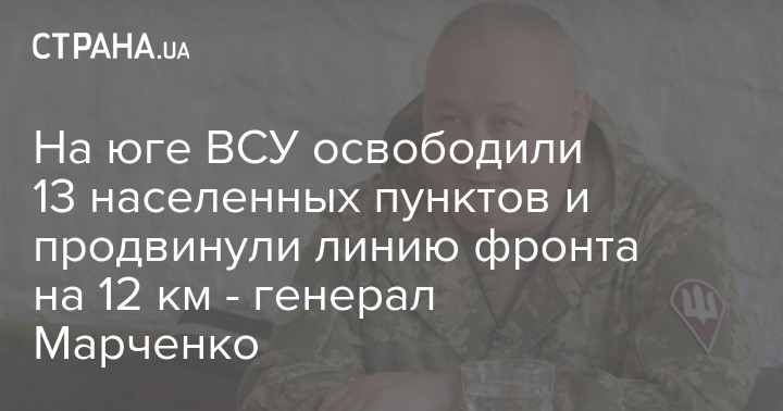 По состоянию на 12 сентября линия фронта на юге Украины продвинулась с начала контрнаступления на 12 километров. Отвоеваны более 500 квадратных километров территорий юга, освобождены 13 населенных пунктов.