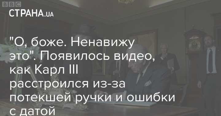 Новый король Британии Карл III был раздосадован из-за потекшей ручки. Это произошло во время подписания книги в официальной резиденции в Северной Ирландии замке Хиллсборо.