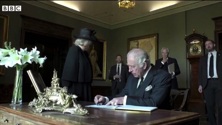 Новый король Британии Карл III расстроился из-за потекшей ручки. Скриншот видео ВВС