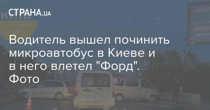Водитель вышел починить микроавтобус в Киеве и в него влетел "Форд". Фото