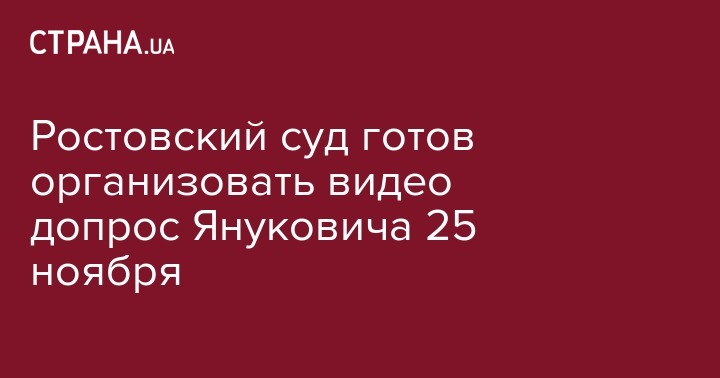Как сообщает "Интерфакс-Украина", Святошинский районный суд Киева получил уведомление от Ростовского облсуда о возможности проведения 25 ноября допроса в режиме видеоконференции бывшего президента Украины Виктора Януковича.