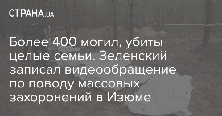 Более 400 могил, убиты целые семьи. Зеленский записал видеообращение по поводу массовых захоронений в Изюме
