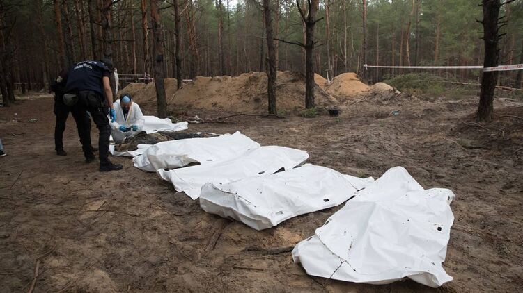 По его словам, специалисты обнаружили тела убитых россиянами "детей и взрослых, мирных людей и военных, замученных, расстрелянных, убитых обстрелами, даже целые семьи - мать, отца, дочь".