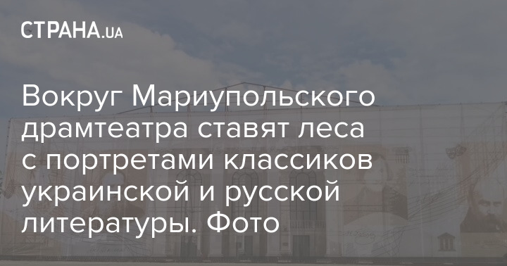 Появились фото Мариупольского драмтеатра, вокруг которого сейчас ставят леса с портретами классиков украинской и русской литературы.