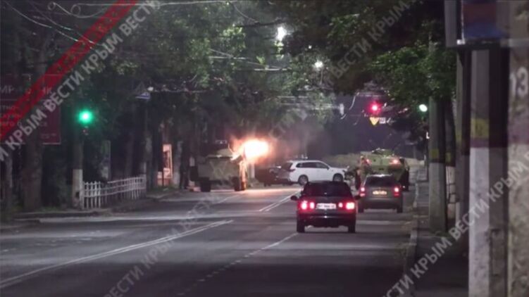 По данным "администрации", в центре Херсона "произошло столкновение между частями российских вооруженных сил и неустановленной группой лиц".