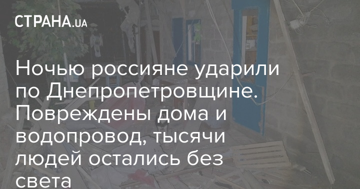 Ночью россияне ударили по Днепропетровщине. Повреждены дома и водопровод, тысячи людей остались без света