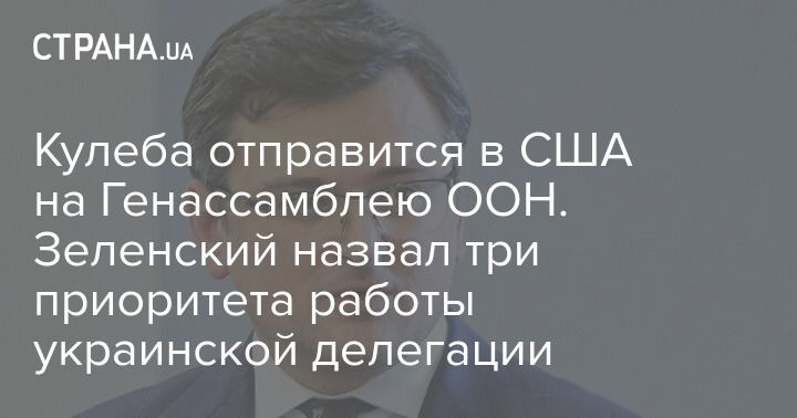 Кулеба отправится в США на Генассамблею ООН. Зеленский назвал три приоритета работы украинской делегации