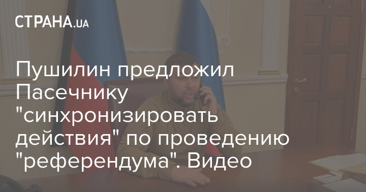 "Глава ДНР" Денис Пушилин опубликовал видео, на котором он договаривается с "главой ЛНР" Леонидом Пасечником о "синхронизации действий" по проведению "референдума" по присоединению "республик" к РФ.