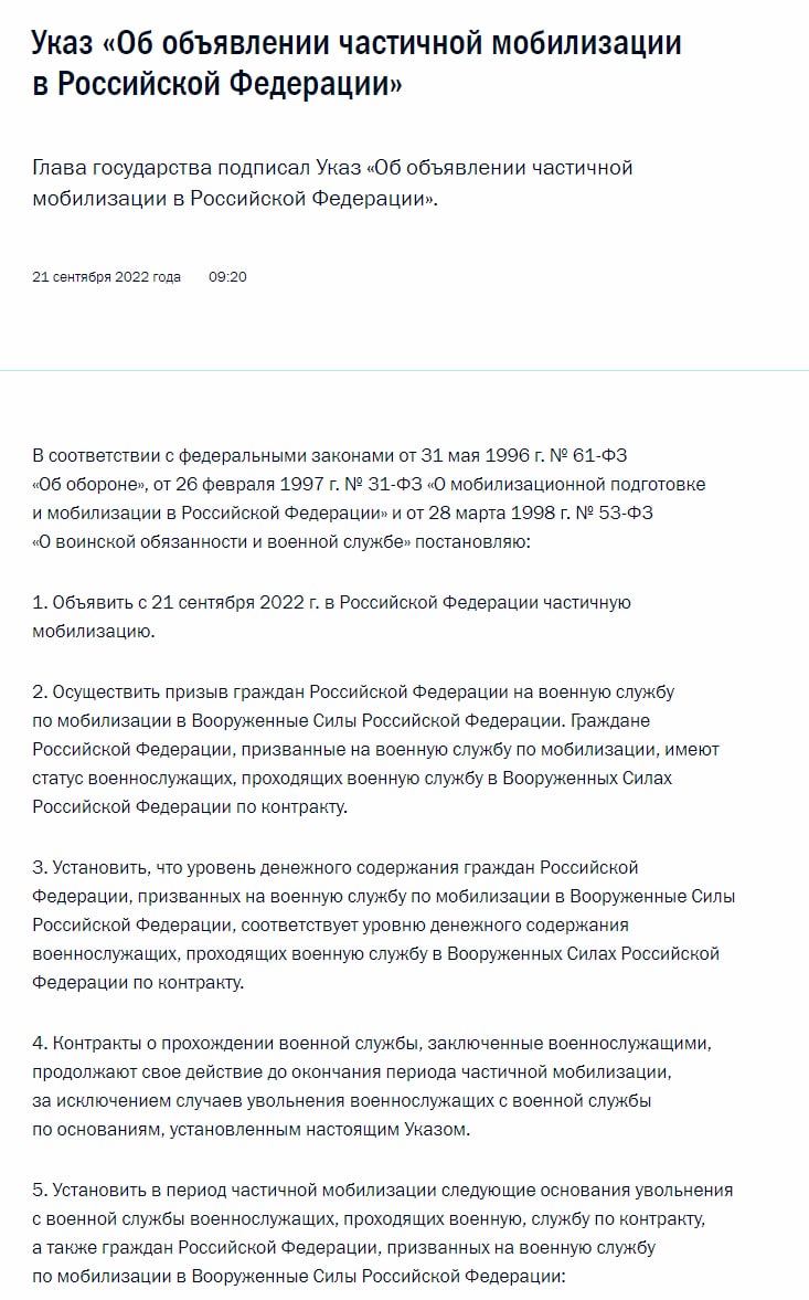 09:26 Полный текст указа Путина о частичной мобилизации в России.