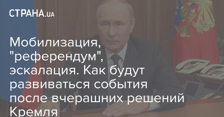В принципе никто в России не сомневается, что назначение "референдумов" с прямо-таки ожидаемым результатом, а также законы, продвигающие общество в сторону мобилизации - это шаг к эскалации. По мнению политолога Маркова, российский президент так отреагировал на принуждение к миру со стороны Запада на фоне успеха украинского наступления.