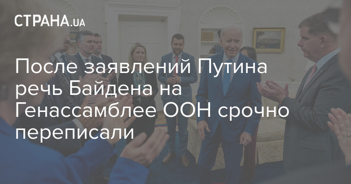 Сотрудники Белого дома вносят правки в речь президента США Джо Байдена, с которой он должен выступить на Генеральной ассамблее ООН. Причина этого - заявления президента РФ Владимира Путина по поводу "референдумов" на захваченных территориях Украины.