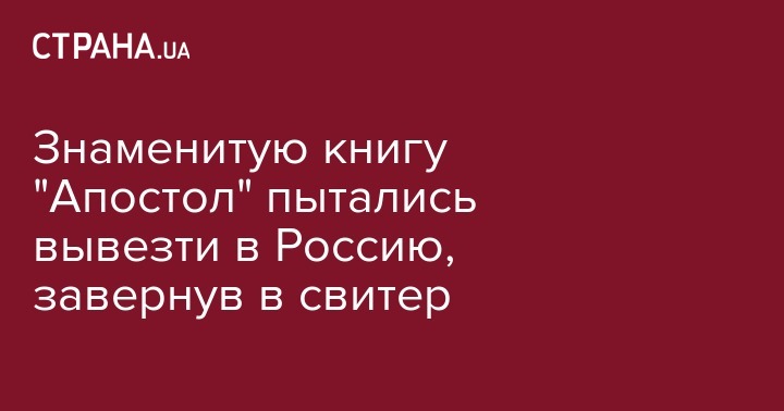 Сотрудники Харьковской таможни Государственной фискальной службы, СБУ и пограничники не позволили вывезти 50-летнему гражданину Украины тайком вывезти в Россию книгу "Апостол" (XVII века).