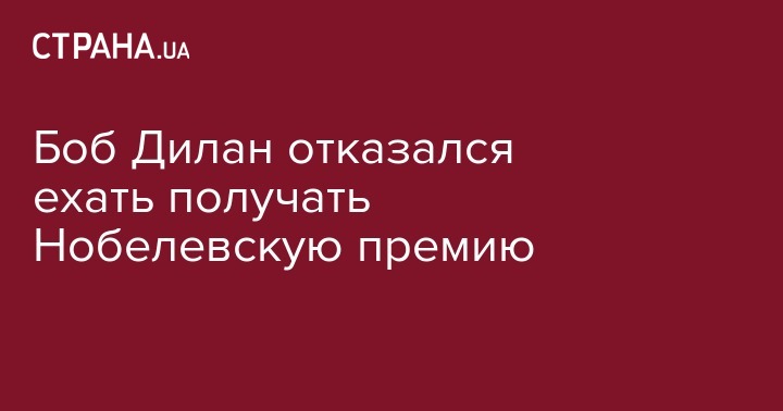 Поэт и исполнитель Боб Дилан отказался ехать на церемонию вручения Нобелевской премии. В его письме к Шведской королевской академии наук говорится, что у него есть некие "ранее данные обязательства", в связи с чем он не сможет в декабре быть в Стокгольме, чтобы получить премию.