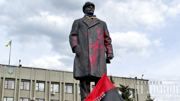 Ленина на центральной площади сначала облили краской активисты, а потом демонтировали. Фото: Славянск деловой