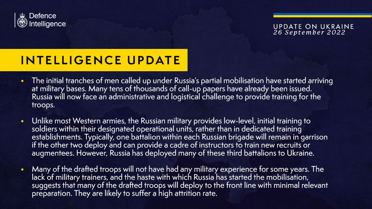 Об этом говорится в сводке британской разведки на утро 26 сентября.