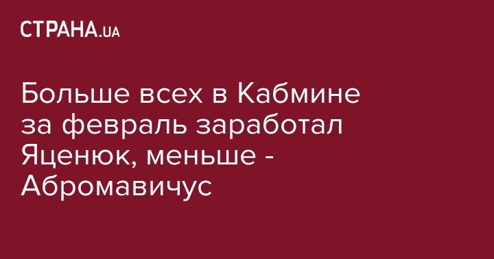 Больше всех в Кабмине за февраль заработал Яценюк, меньше - Абромавичус