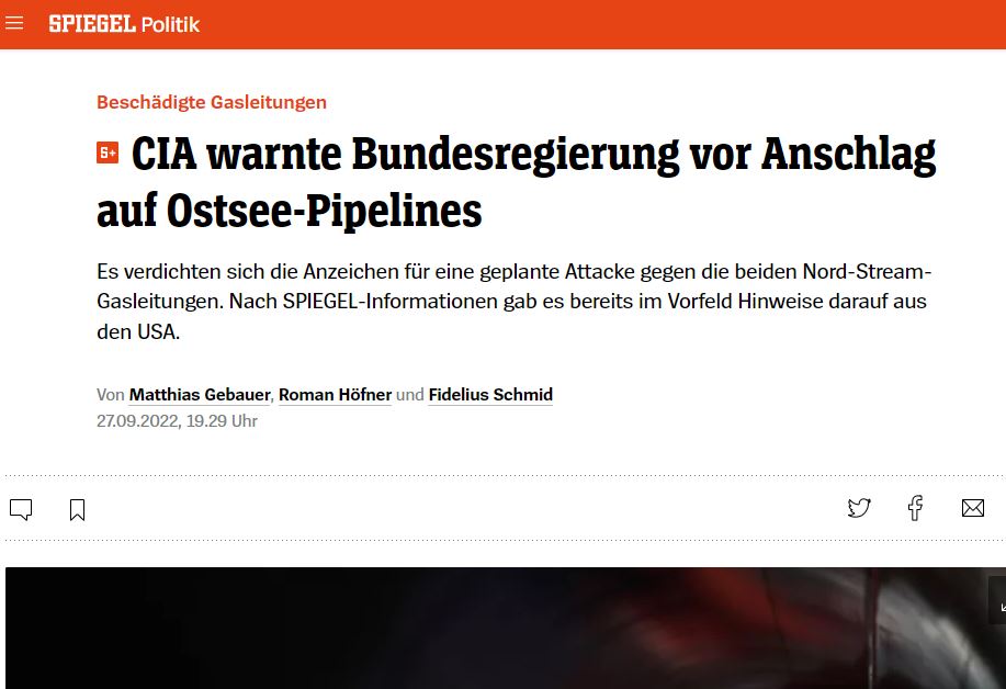 05.50 Несколько недель назад ЦРУ предупреждало правительство Германии о возможных диверсиях на газопроводах.