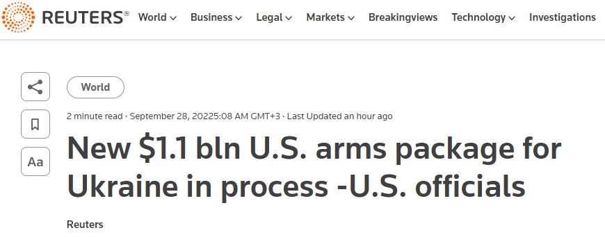 06.00 В США в ближайшее время готовятся объявить о новом пакете оборонной помощи Украине на сумму более $1 миллиарда.
