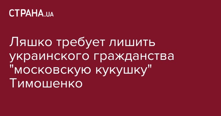 "Я обращаюсь с требованием к президенту Порошенко лишить Тимошенко украинского гражданства за антигосударственную деятельность. Пусть Путин предоставит ей российское гражданство, она это заслужила, как и звание героя России, за подрывную деятельность, которую эта московская кукушка проводит в Украине", - заявил Ляшко.