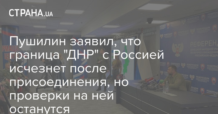 "Глава ДНР" Денис Пушилин заявил, что после присоединения к России граница между РФ и "республикой" исчезнет. Однако проверки на "бывшей границе" проводить все равно будут.