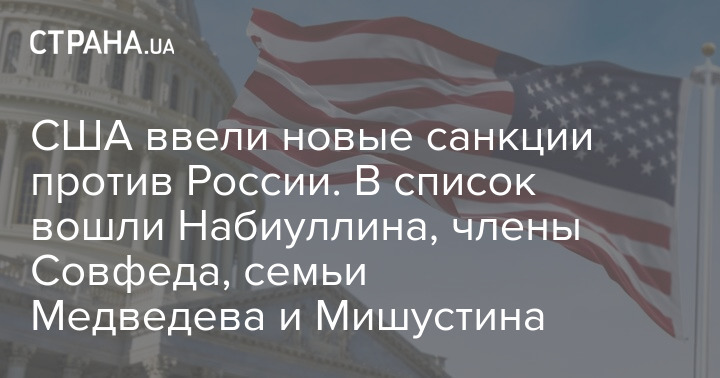 Санкции введены против главы Центробанка РФ Эльвиры Набиуллиной, зампреда правительства РФ Александра Новака, членов семей замглавы Совбеза РФ Дмитрия Медведева и главы правительства РФ Михаила Мишустина, а также против членов Совфеда.
