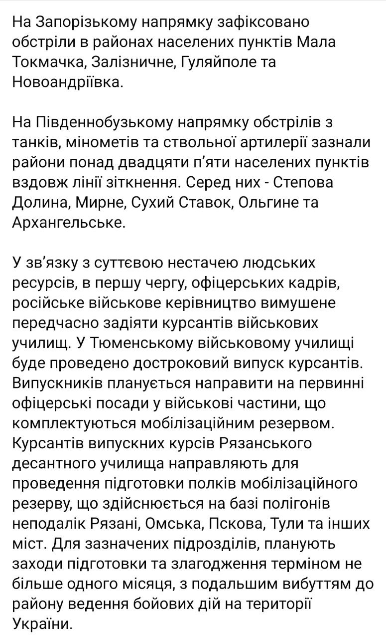 3. О взятии Ямполя под Лиманом, о чем вчера заявил Владимир Зеленский, в сводке не упоминается. Как и в целом о ситуации в Лимане, который окружают украинские войска.