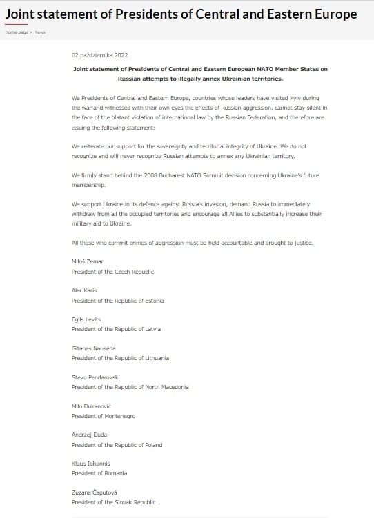 14.28 Лидеры девяти стран НАТО из Центральной и Восточной Европы опубликовали совместное заявление по Украине.