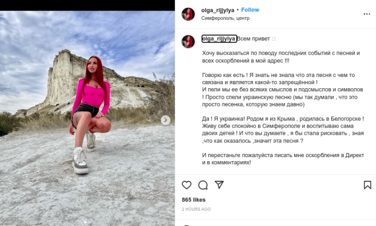 Сама Валеева в своем Instagram пишет, что не знала о запрете на исполнение данной песни, которая является неофициальным гимном УПА и стала символом украинского сопротивления РФ, и назвала себя украинкой.