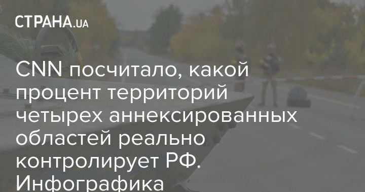 Агентство CNN посчитало, какой процент территории четырех областей Украины, об аннексии которых объявили в РФ, находится под российским и украинским контролем (по состоянию на 30 сентября).