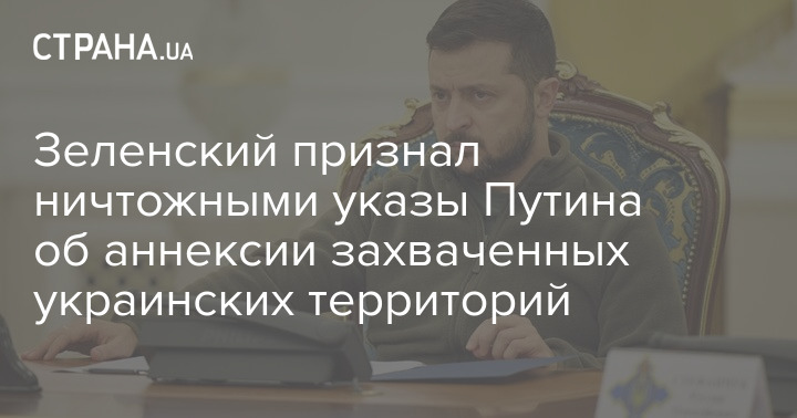 Зеленский признал ничтожными указы Путина об аннексии захваченных украинских территорий