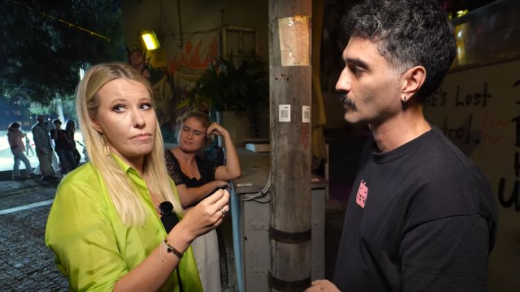 Россияне считают бар "самым русофобским" в грузинской столице. Собчак пыталась пояснить владельцу Дато Лапаури, что он ущемляет людей "по национальному признаку", а тот в ответ объяснил ей, почему у бара такая политика.
