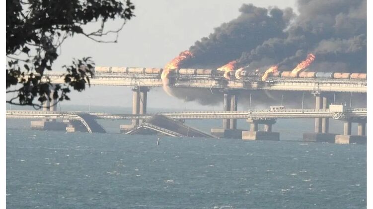На Крымском мосту повреждено более километра ж/д пути. Фото: Из открытых источников