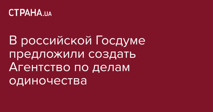 В РФ предложили создать Агентство по делам одиночества для организации психологической помощи гражданам, прежде всего жителям городов, живущим работой в офисе и просмотром телевизора. Идею выдвинул первый замглавы фракции ЛДПР в Госдуме и зампред комитета по охране здоровья Сергей Леонов.