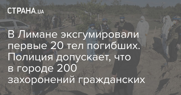 Полиция эксгумировала первые 20 тел на месте массового захоронения в недавно освобожденном Лимане Донецкой области. Количество захоронений может достигать 200 гражданских.