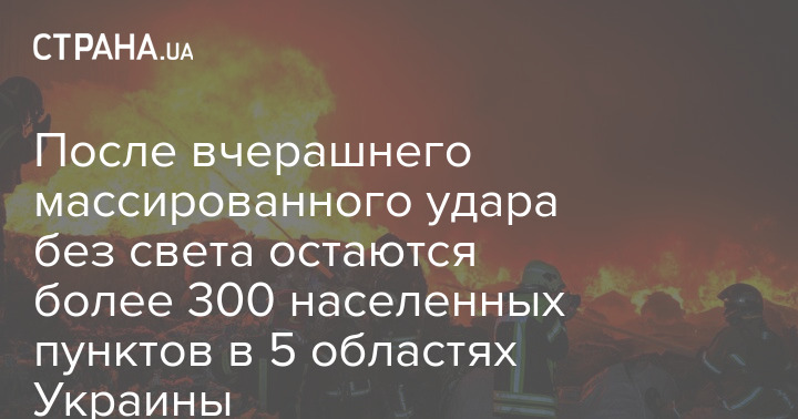 После вчерашнего массированного удара без света остаются более 300 населенных пунктов в 5 областях Украины