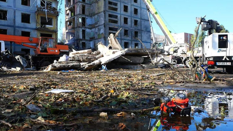 Во вторник, 11 октября, в Запорожье продолжаются аварийно-спасательные работы на местах разрушения жилых домов.