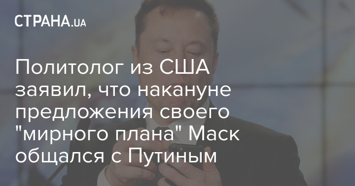 Прежде чем предложить свой "мирный план" для Украины, американский миллиардер Илон Маск общался с президентом РФ Владимиром Путиным. Об этом заявил американский политолог Ян Бреммер, сославшись на разговор с самим Маском.