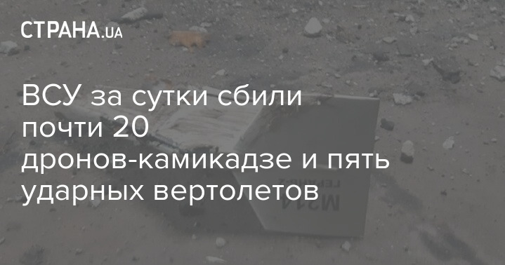 ВСУ за сутки сбили почти 20 дронов-камикадзе и пять ударных вертолетов
