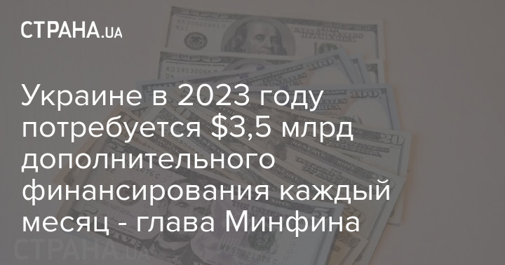 В 2023 году Украине потребуется дополнительное финансирование в сумме в 3,5 миллиардов долларов месяц.