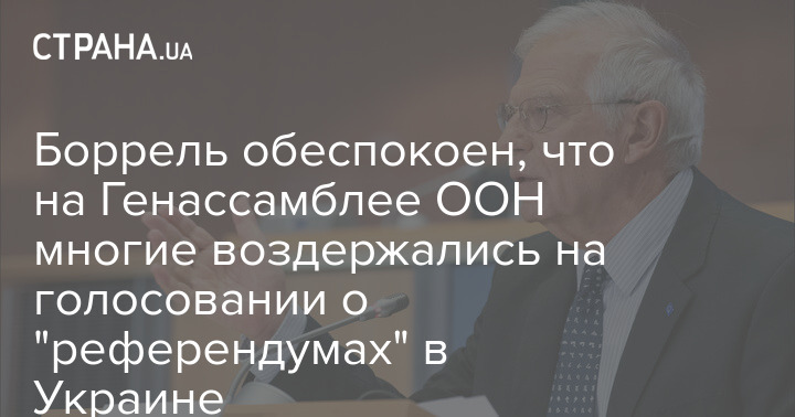 Боррель обеспокоен, что на Генассамблее ООН многие воздержались на голосовании о "референдумах" в Украине