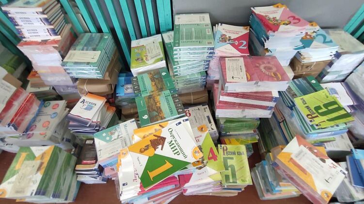 По его словам, в общеобразовательной школе в Боровой следователи во время осмотра обнаружили и изъяли около 700 учебников для учеников с первого по одиннадцатый класс российского производства.