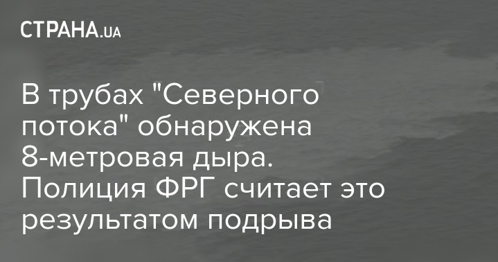 В трубах "Северного потока" обнаружили 8-метровую дыру, сообщила немецкая полиция по итогам обследования места аварии газопроводов с помощью подводных аппаратов Бундесвера.